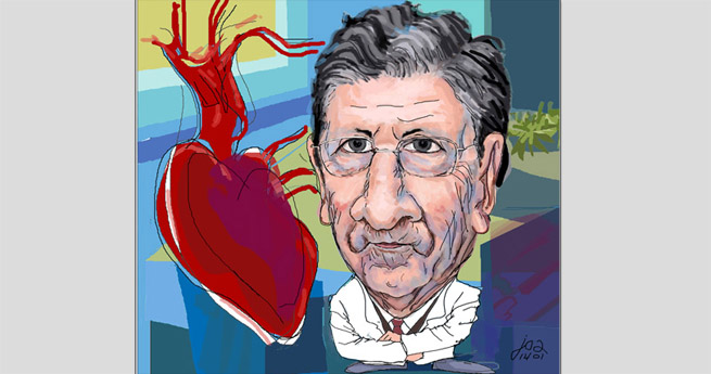 Cartoon de Carlos Ramalhão, publicado na edição Especial do Jornal Médico (janeiro 2014), que assinalou as 25.as Jornadas de Actualização Cardiológica do Norte para a MGF.