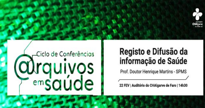 O Centro Hospitalar do Algarve arranca, em fevereiro, com a primeira sessão de um ciclo de conferências denominado "@rquivos em Saúde" e que irá decorrer, ao longo do ano, com uma periodicidade mensal. O presidente do Conselho de Administração dos Serviços Partilhados do Ministério da Saúde (SPMS), Henrique Martins, é o orador convidado para esta primeira ação. "Registo e difusão da informação de Saúde" é o tema em debate.