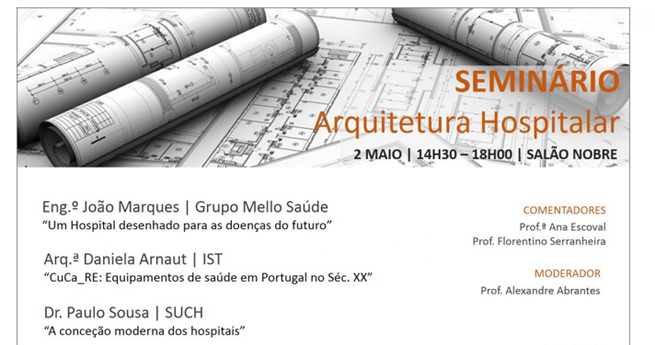 O seminário "Arquitetura Hospitalar", que se realiza no âmbito da disciplina "Tecnologias e Equipamentos Hospitalares", coordenada por Teresa Magalhães, tem início às 14h30.