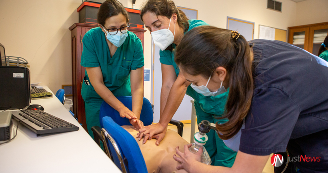 No dia em que a Just News assistiu a uma destas sessões, em abril, era a vez de a Anestesiologia ministrar, praticando-se exercícios como a reanimação em cenário de paragem cardiorrespiratória, com abordagem da via aérea ou recorrendo a massagem cardíaca. Na opinião do profissional, esta colaboração multidisciplinar também é vantajosa no sentido da “aproximação das equipas de Ginecologia/Obstetrícia com as especialidades que nos circundam no dia-a-dia”.