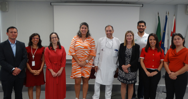 Sérgio Domingos (vogal do CA), Ana Bento (administradora hospitalar), Ana Luísa Bernardo (médica adjunta da Direção Clínica da USF Villa Romana), Mileta Gomes (médica coordenadora da USF do Vale do Sorraia), António Mendes (enfermeiro gestor da UHD), Ana Rita Paulos (diretora clínica para os Cuidados de Saúde Hospitalares), Yahia Abuowda, médico coordenador da UHD, Tatiana Silvestre (presidente do CA), Sónia Malaca (enfermeira UHD).