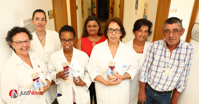 “A nossa equipa achou que a Unidade deveria criar algo que permitisse uma maior proximidade entre os pais, as crianças e os profissionais de saúde. Nesse sentido, entregamos um guia para orientar os pais no primeiro ano de vida e, com o nosso próprio dinheiro, comprámos peluches”, conta a enfermeira Ana Santos.