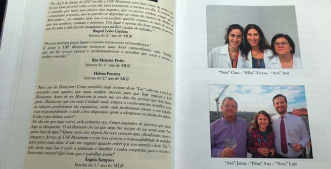 Após a explicação do trajeto da unidade desde 1999, Ana Macedo Sardinha dedica um capítulo apenas aos afetos. “Conto com testemunhos de todos quantos contribuíram para que a USF Horizonte seja o que é hoje em dia, após se ter aventurado um pouco no desconhecido para levar em frente um sonho.”