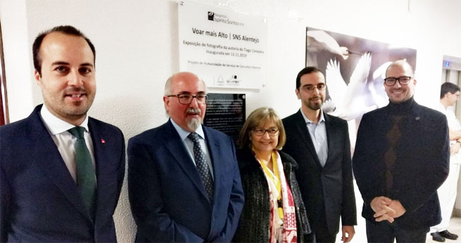 "Hoje é um dia muito feliz para nós", afirmou Maria Filomena Mendes, presidente do Conselho de Administração do Hospital do Espírito Santo de Évora, na inauguração da exposição permanente de fotografia intitulada "Voar mais alto | SNS Alentejo", da autoria de Tiago Caravana.