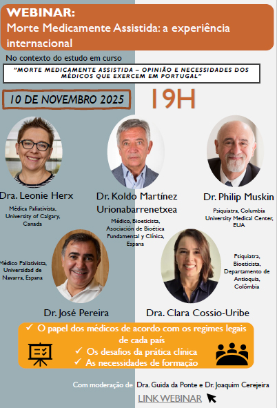 Na apresentação do webinar, é sublinhado ainda que "a morte medicamente assistida levanta questões médicas importantes, pelo que importa identificar as opiniões e necessidades formativas dos médicos em relação ao tema, nomeadamente na avaliação dos doentes e na aplicação da lei, de forma a capacitá-los a exercer o seu papel fundamental de garante da prestação de cuidados de excelência"..jpg)